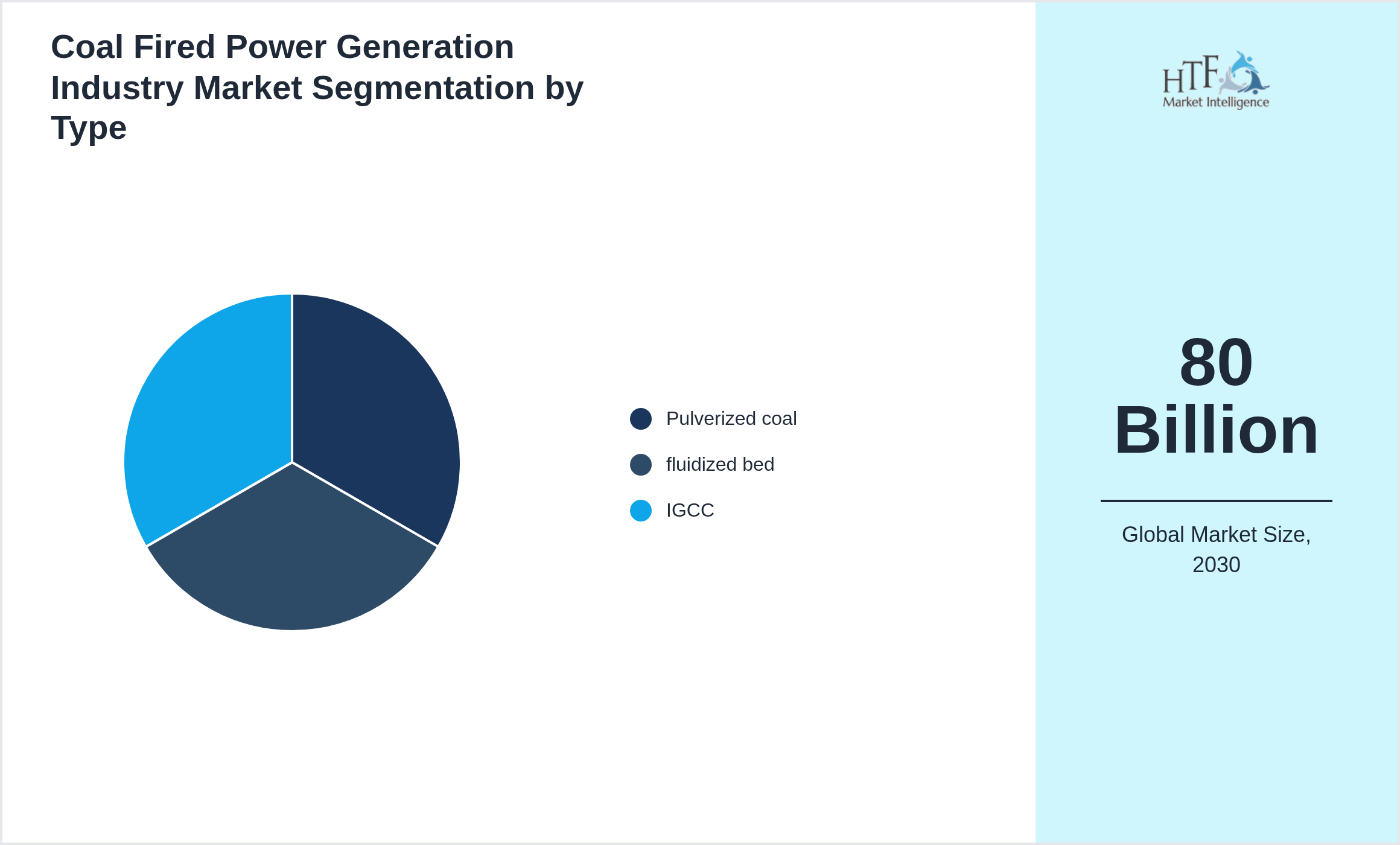 Global Coal Fired Power Generation Industry Market is segmented by Application (Base load power generation), Type (Pulverized coal, fluidized bed, IGCC), and Geography (North America, LATAM, West Europe, Central & Eastern Europe, Northern Europe, Southern Europe, East Asia, Southeast Asia, South Asia, Central Asia, Oceania, MEA)