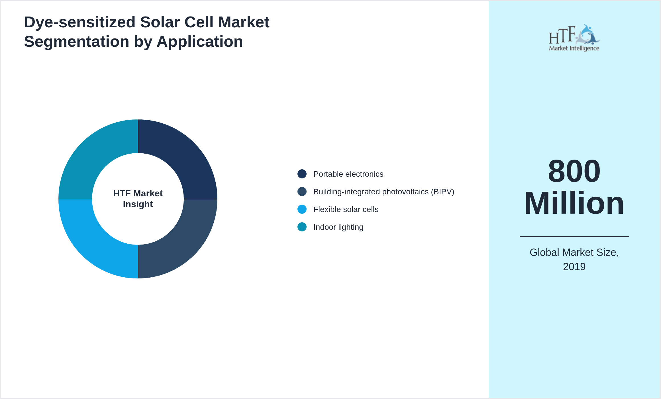 Liquid electrolyte DSSCs, Solid-state DSSCs, Portable electronics, Building-integrated photovoltaics (BIPV), Flexible solar cells, Indoor lighting, Sales Channel |